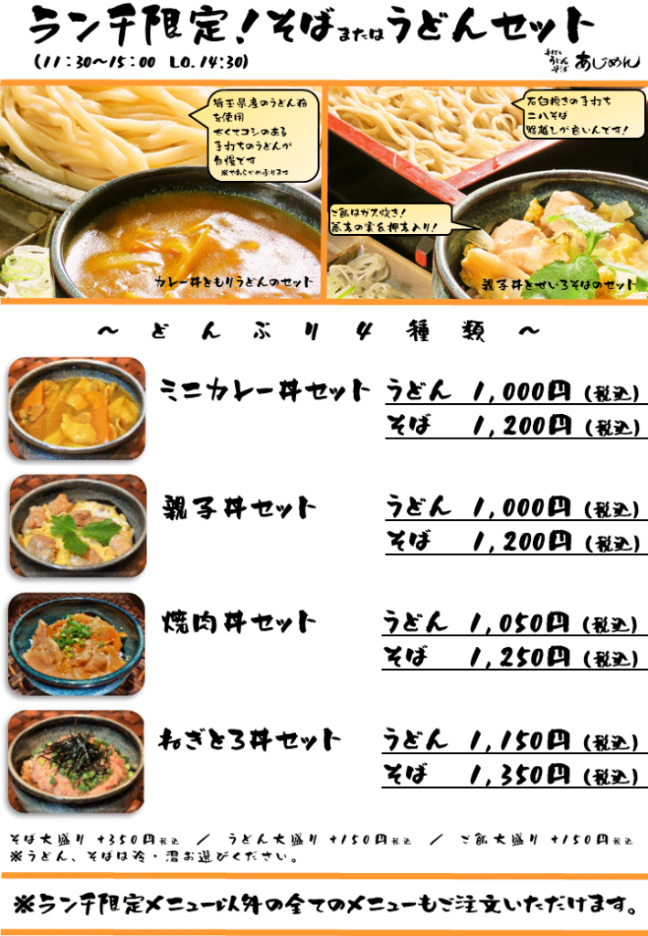 ランチメニュー 2019/12/31 <ランチ>土日祝限定!北浦和店 11:00~15:00 LO14:30 / 浦和店 11:30~15:00 LO14:30 価格は全て税抜表示になっております。 x